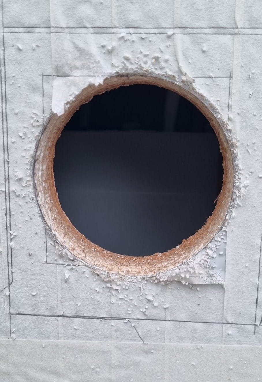 - Bohrbereich abkleben